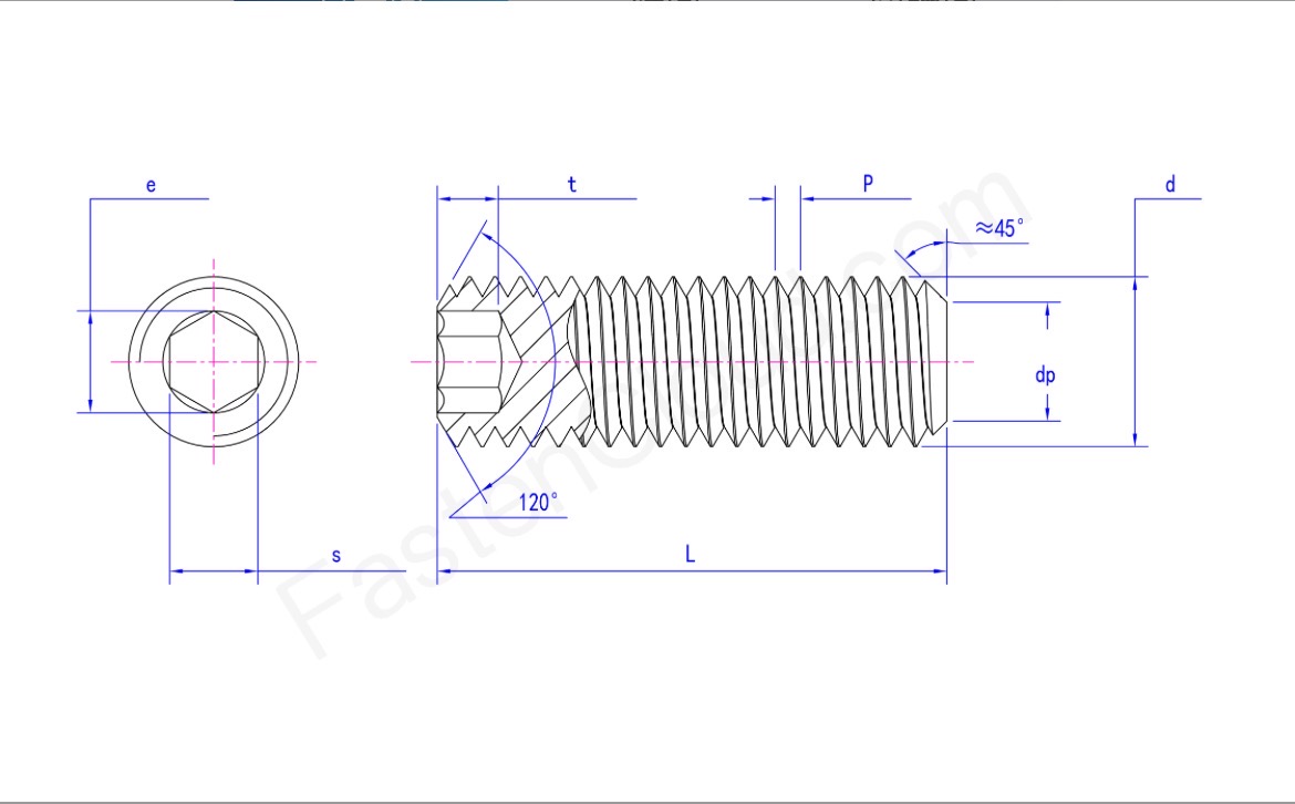 平端紧定螺钉是一种机械紧固件,其头部设计为内六角或开槽等便于工具操作的形状,末端为平整的圆柱面(平端)。这种设计使其在拧入工件后,能够通过平端与被固定零件的表面均匀接触,提供稳定的顶紧力。