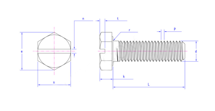 304不锈钢外六角开槽半牙细杆螺栓