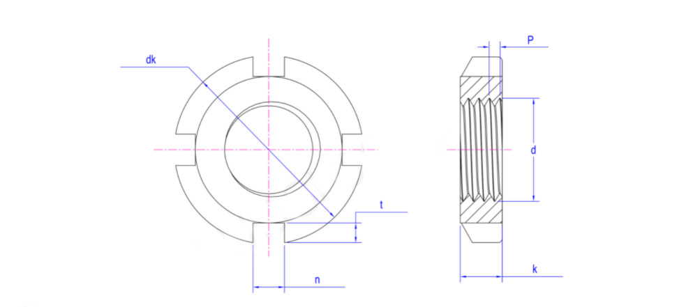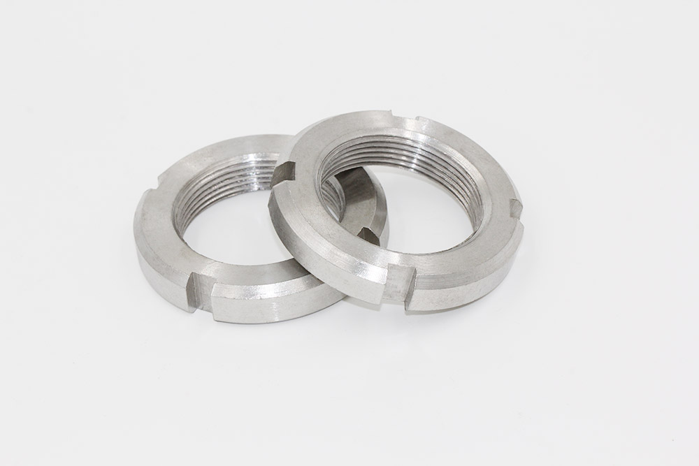一般圆螺母与圆螺母用止动垫圈配套使用,按装的时候将垫圈内舌插入轴上槽内,而将垫圈的外舌嵌入圆螺母的槽内,此时螺母即被锁紧;或者也可以采用双螺母的使用方式防松。常作为滚动轴承的轴向固定。螺纹规格为M10×1~M200×3的圆螺母。