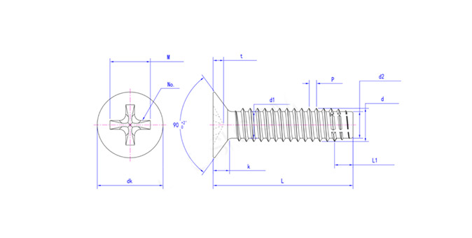 沉头割尾自攻螺钉平尾钉IFI 502-8-1982 BF牙十字槽(H型)